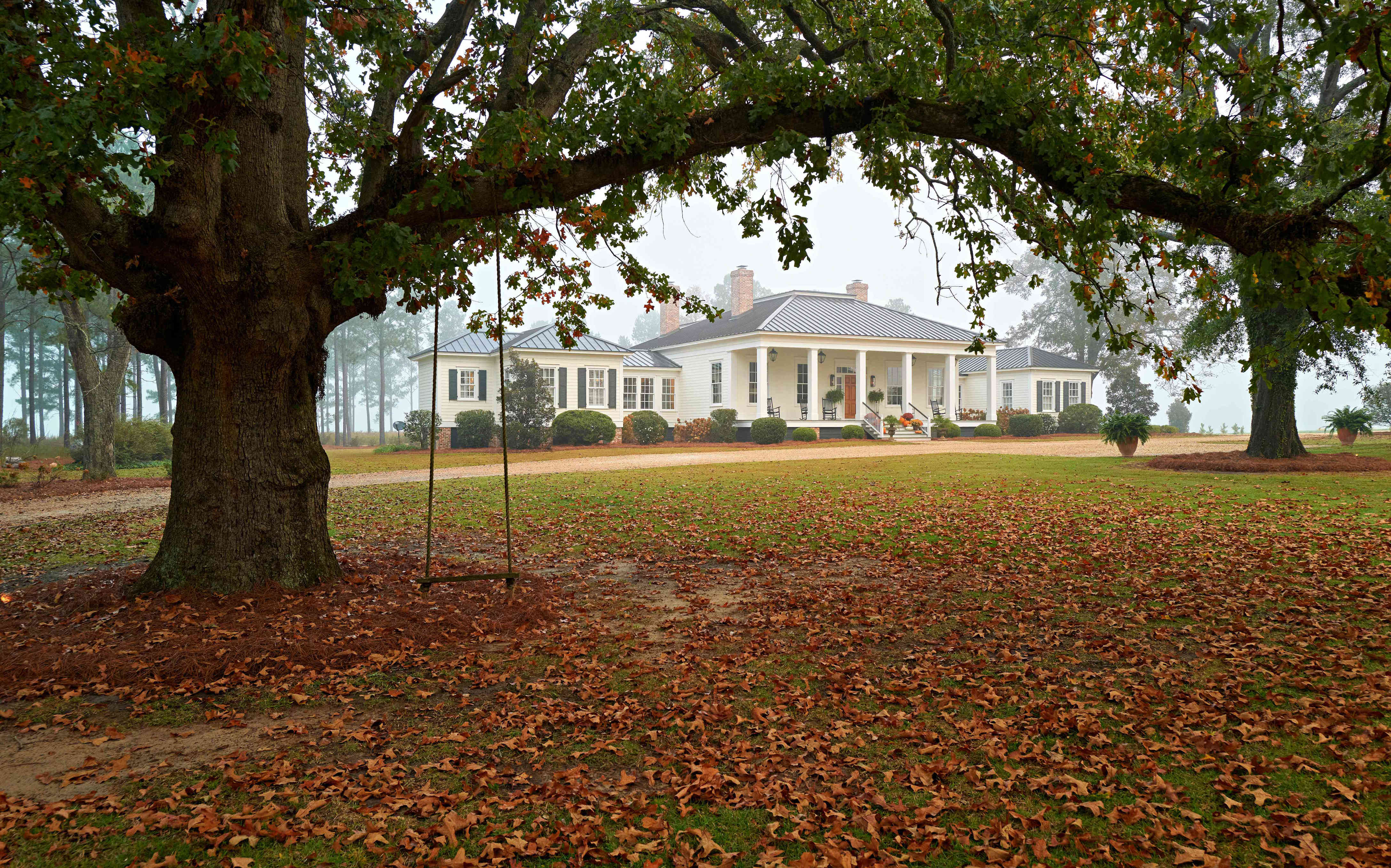 "According to family lore, for every child born in the house, they planted an oak tree," remarks MeriBeth about the property’s ancient oaks.