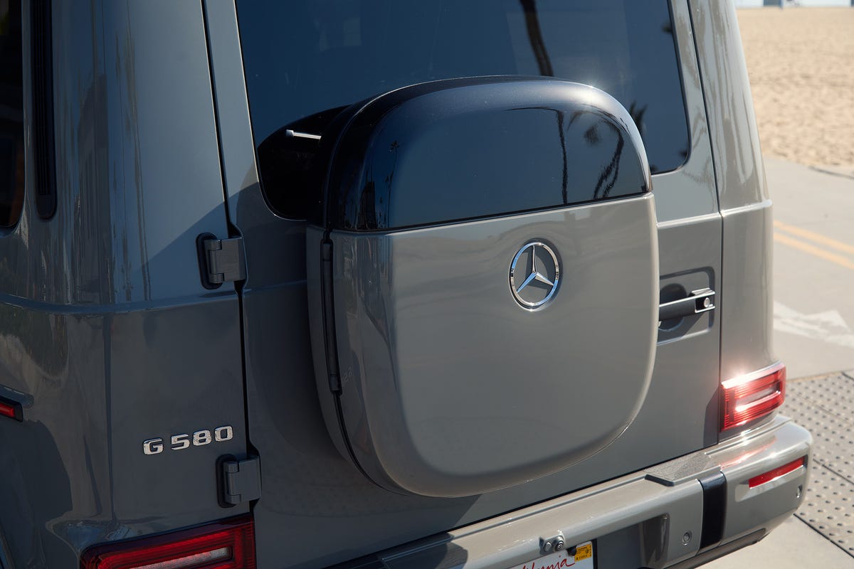 The G580 appears quite similar to its Internal Combustion counterparts. G550 and AMG G63 And that’s intentional. While there are some discreet references to aerodynamics, they’re not very apparent at first glance. The most noticeable feature of the G580 is undoubtedly its slender rear cargo compartment, designed to store a charging cord in place of a spare tire. However, you have the option to request a traditional spare tire installation, making this detail less indicative of the model type.