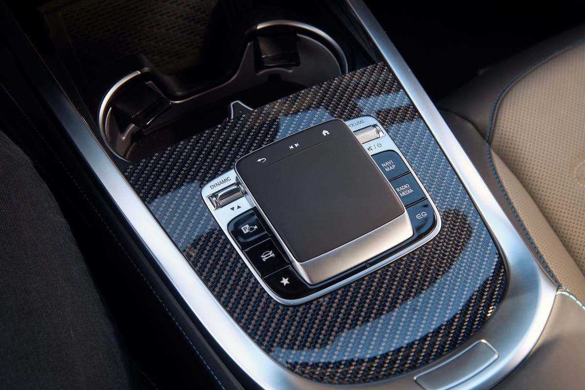 Additionally enhancing torsional stiffness is the 127-pound underbody shield that safeguards most components located between the wheels. According to Mercedes, this part, secured by 50 bolts, consists of “a smart blend of materials including carbon.” This phrasing might seem less definitive than asserting a pure carbon-fiber guard, yet peering underneath reveals what appears unmistakably as a shiny black carbon-weave structure. Regardless of how Daimler refers to it, this protective layer aims to withstand extreme off-road impacts for safeguarding the battery pack; damaging the pack could seriously disrupt an enjoyable outdoor excursion.