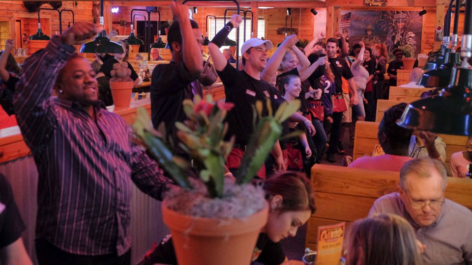 Compared to Outback’s sporadic promotional deals, Texas Roadhouse maintained lower prices on most menu items. They attracted patrons not only through their affordable pricing but also via their energetic, rodeo-themed dining spaces adorned with wooden paneling, murals, and catchy country music. To set itself apart, the restaurant offered complimentary peanuts along with sweet honey-cinnamon roll sticks and sometimes even had staff perform impromptu line dances for entertainment.