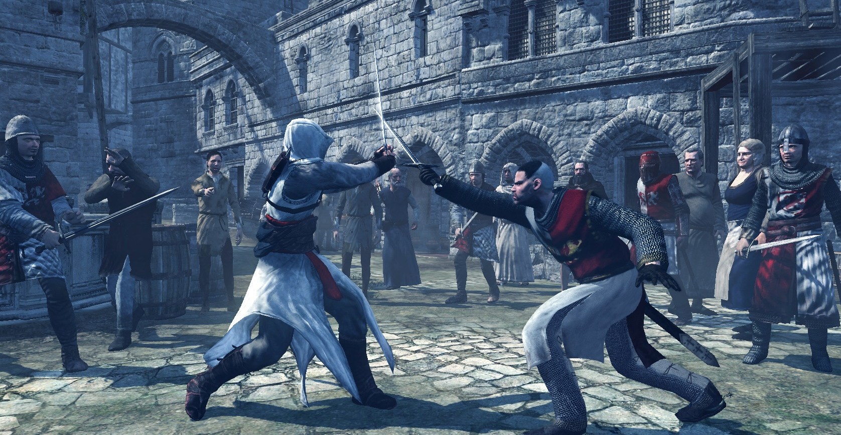 What makes the original so valuable? Assassin’s Creed — aside from its endearing wax-museum-style characters — Is the feeling, at each instant, as though you're experiencing the absurdity of the most ridiculous video game concept ever proposed. Imagine being the CEO of Ubisoft back in 2004 when the world’s top-selling titles were all the rage. Half-Life 2 , World of Warcraft , and "Grand Theft Auto." Patrice Désilets, an individual with prior accomplishments including Prince of Persia: The Sands of Time And a Donald Duck game proposes a new franchise that somewhat mirrors Grand Theft Auto.