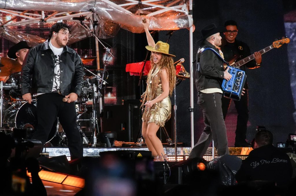For the first time during her Las Mujeres Ya No Lloran World Tour, Shakira she performed alongside special guests. On Tuesday (March 25), during her fourth night at the legendary GNP Seguros Stadium in Mexico City, the Colombian sensation was accompanied by Grupo Frontera For a live rendition of "Entre Paréntesis," a track from her 2024 album which also lends its title to the tour.
