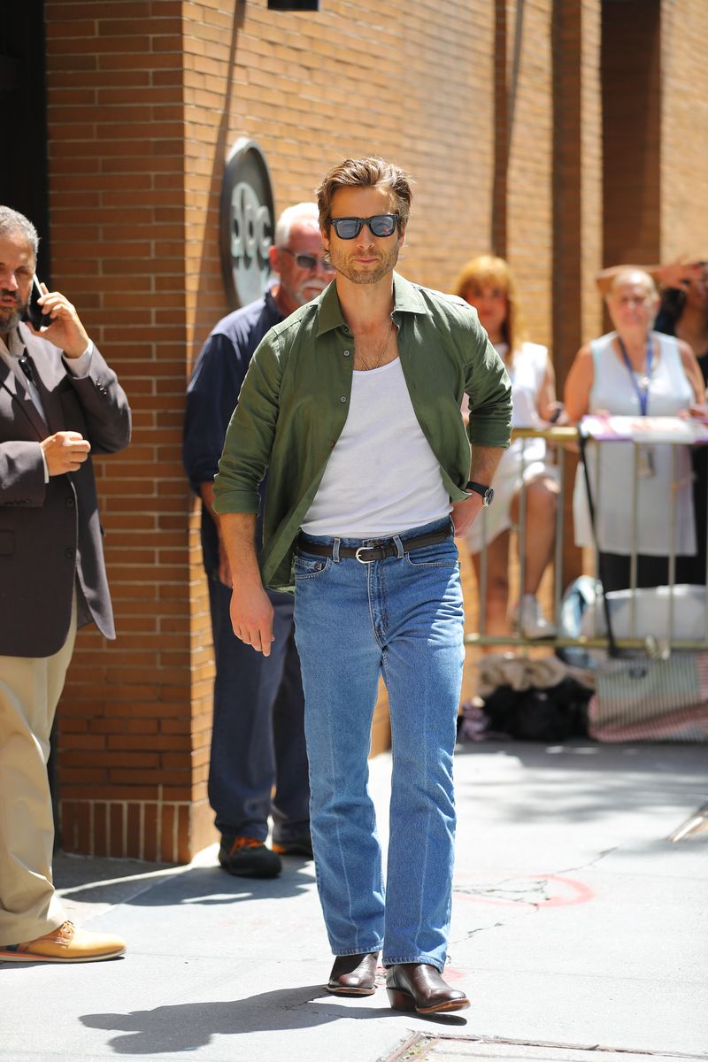 In essence, boots with a pointed toe and a subtle heel enhance your overall appearance. They make your relaxed style appear more deliberate, particularly since loose-fitting jeans often create the impression of being shorter. The added height from the heel significantly improves your vertical lines. Additionally, this combination provides a touch of novelty; while baggy jeans paired with sneakers always work well, pairing them with cowboy boots adds a dynamic flair instead of just looking ordinary. good .