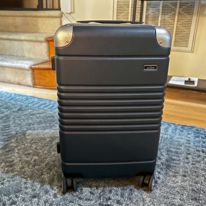 Lubinsky was impressed with how smoothly this suitcase glides, comparing its movement through the airport to sliding effortlessly like butter. She also valued several practical features such as the dual TSA-compliant lock mechanisms, included laundry and shoe pouches, and a detachable USB charging port capable of providing half a charge to her phone within less than 30 minutes. "This useful charger makes me want to use this as my main carry-on," she remarks.