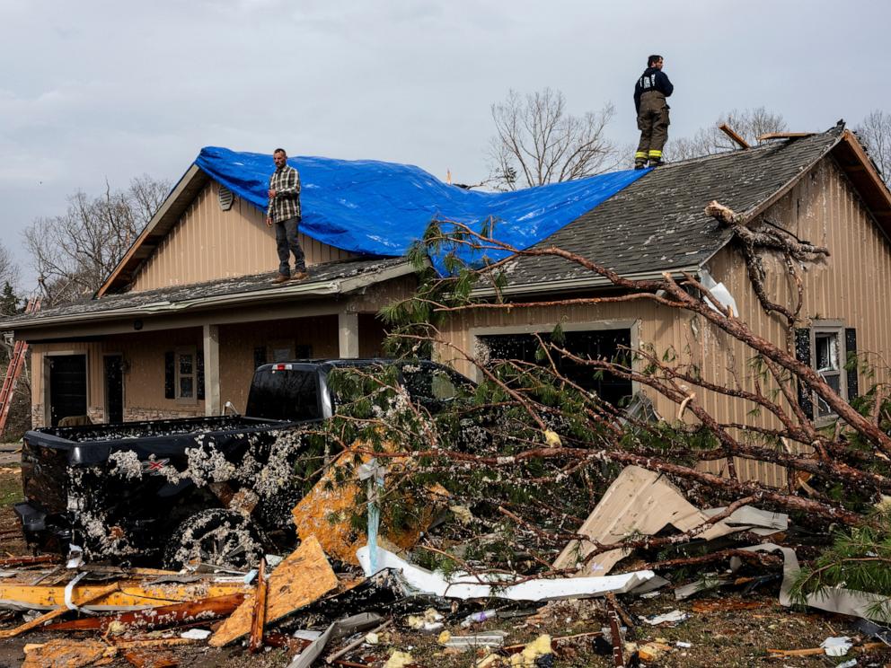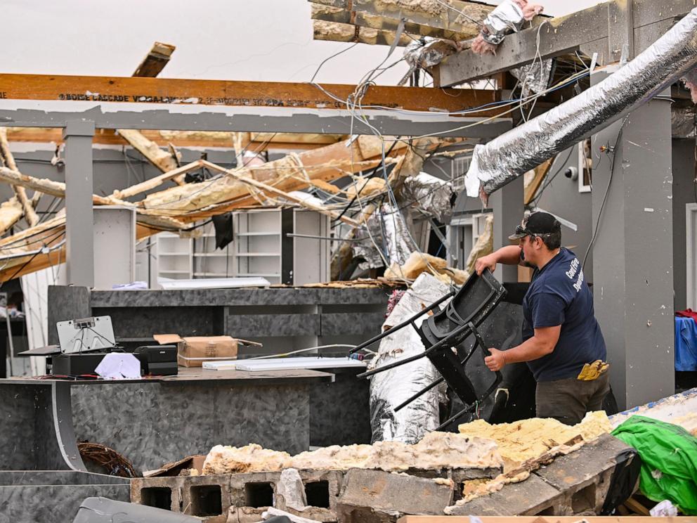 The National Weather Service reports damage consistent with 165 mph winds observed in Arkansas.