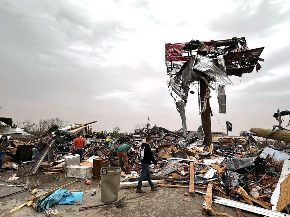 Tornado damage consistent with winds of 165 mph have been recorded in Cave City, Arkansas, according to the National Weather Service's tornado survey team.