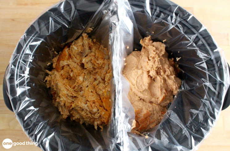 Utilize aluminum foil to form a partition in the middle of your Crock-Pot. Cover it with a slow cooker liner and press it down into both sections. This way, you can utilize your Crock-Pot for cooking or warming up dishes simultaneously in separate areas. two dips or soups!