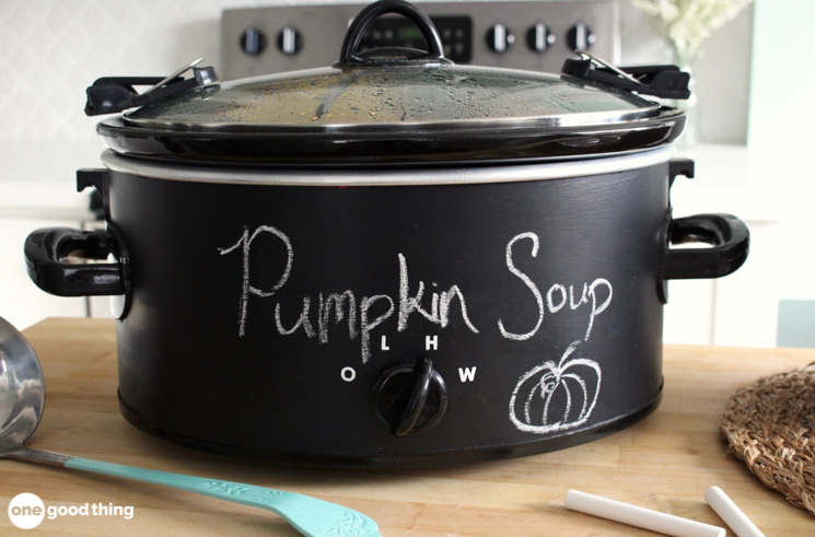 Applying a chalkboard coating to your slow cooker allows for simple labeling of contents, making it convenient to present meals directly while ensuring your guests are aware of what they're eating. Additionally, it adds an elegant touch! However, acquiring this trendy look doesn’t require purchasing a new appliance; simply obtain some chalkboard paint instead. chalkboard paint !