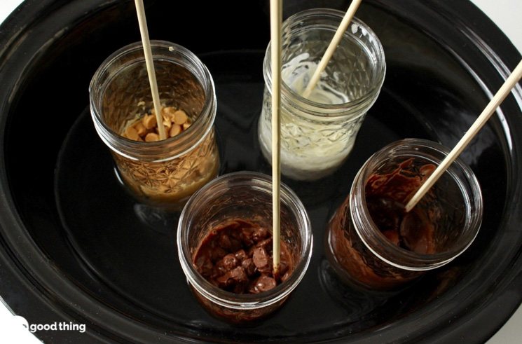 Utilize your slow cooker as a makeshift double boiler by putting the item you wish to heat inside a glass jar, placing this jar into the slow cooker, and adding several inches of lukewarm water. This method works well for tasks such as melting chocolate and preparing salves among others.
