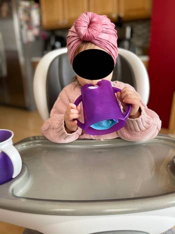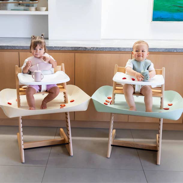 20. A waterproof, reusable highchair "catchy" To make cleanup after mealtimes effortless. Goodbye to carrots, peas, and mashed foods scattered across your floor! Everything that mysteriously lands outside your child’s mouth will collect here instead. You just need to empty and clean it out.