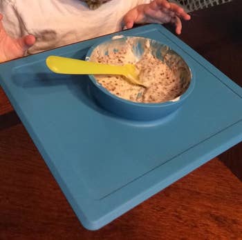 3. A no-slip bowl Attached to a placemat, making sure your messy eater doesn’t knock over their meal. It sticks to tables using suction cups to minimize spills. Plus, cleaning up is easy; simply throw it in the dishwasher once it’s dirty. By the way, it’s also safe for use in the microwave!