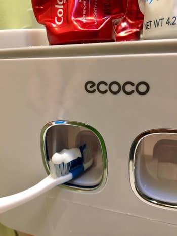 9. A TikTok famous toothbrush holder and toothpaste dispenser So you won’t have a pile of excess toothpaste building up near your sink each time your kid brushes their teeth since it releases only the precise amount needed. Plus, installing it on the wall keeps your countertop clutter-free — everyone benefits.