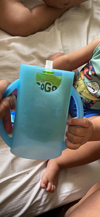Positive feedback: "These are incredible!" I purchased two sets of these to keep some in our diaper bag or as backups in case we misplace one. We use them every day for our 12-month-old when she has yogurt. Gogo squeeze ) and her fruit and veggie pouches Seriously, I absolutely love them. Previously, we had yogurt and fruit everywhere because she used to squeeze them out. My spouse inadvertently stood on the pouch while I was wearing it, but nothing leaked out! It truly transforms things once your little one masters using it (our child caught on very fast). I tested the pouch holders equipped with handles, yet she kept swinging it around, causing it to spill anyway. That's exactly what you're looking for! " — Shem Slater