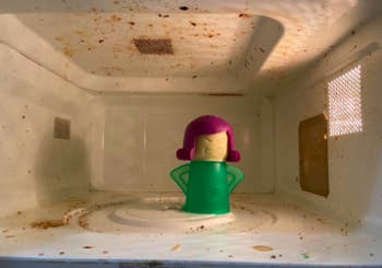 15. A microwave cleaner for stuck-on messes. It releases steam to loosen spattered food so that it's easier to wipe away. So, you won't have to freak out when your child forgets to use the microwave cover when heating up tomato soup. You can even fill it up with a combo of vinegar and water to disinfect your microwave.