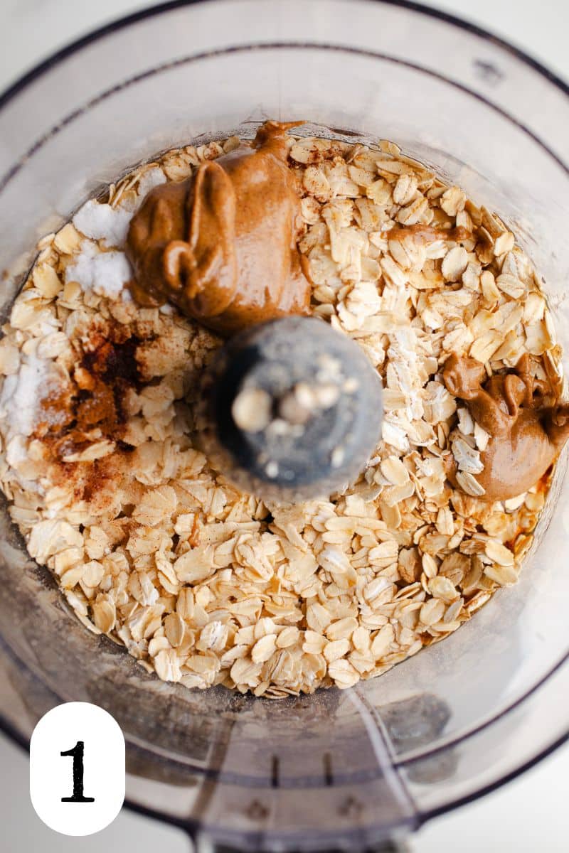 Step 2: Proceed at a low to moderate speed until the oats break down into smaller bits and a dense dough comes together.