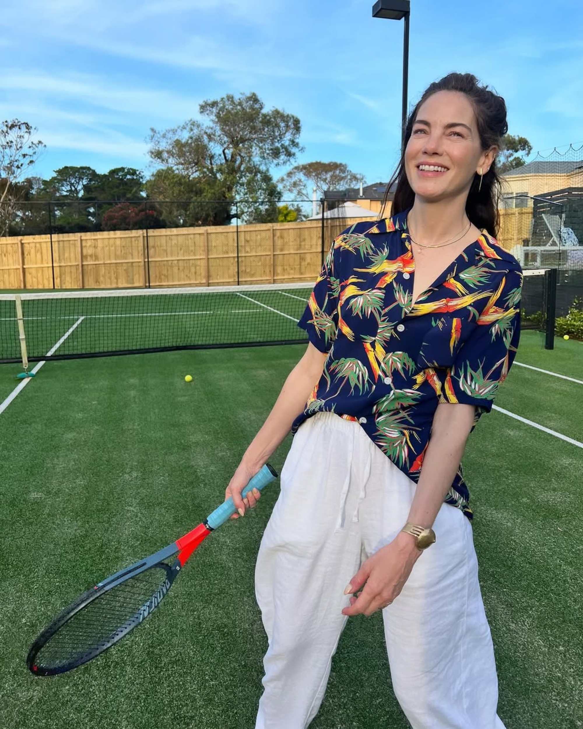 In The White Lotus season three, Kate (played by Leslie Bibb) tells Jaclyn (portrayed by Michelle Monaghan) that she looks "amazing", as she looks her up and down in awe.