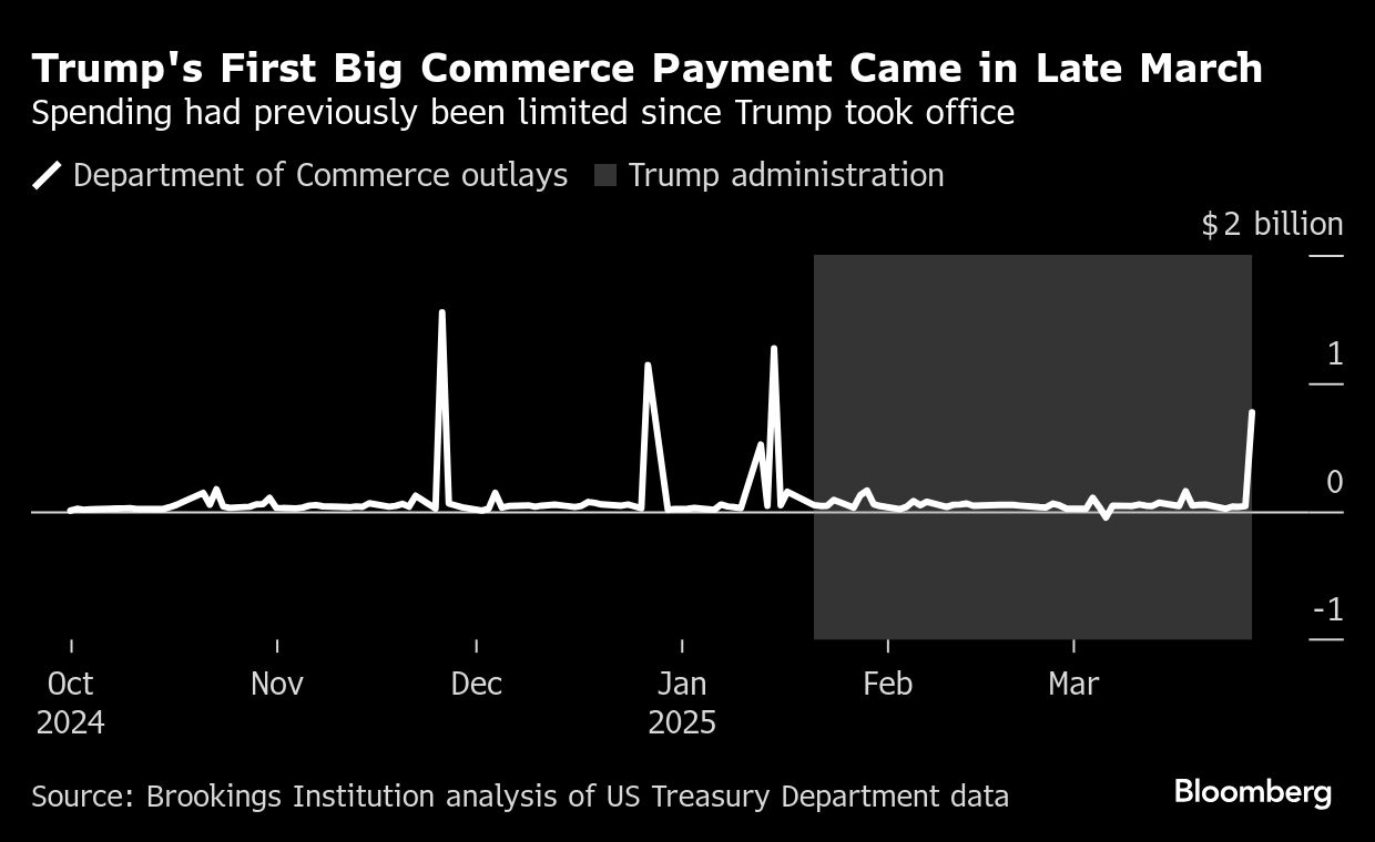 Federal spending data indicates that Commerce Department spending remained fairly steady under President Trump’s tenure until a significant disbursement of approximately $770 million occurred recently.