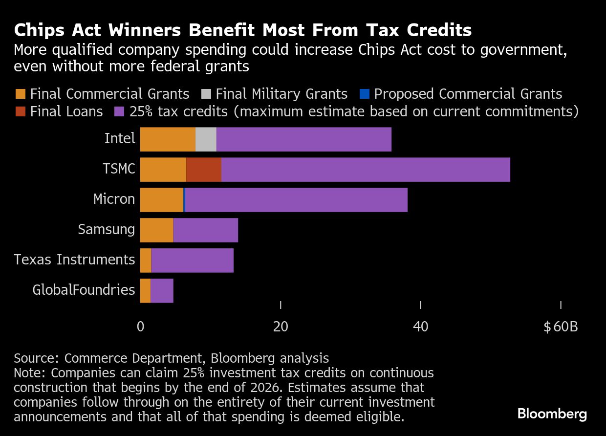 In nearly every instance, the Chips Act grants represent the smaller portion of company benefits compared to the subsidies they'll receive. A significantly larger amount of funding originates from the 25% tax credits, which similarly do not hinge upon environmental or labor criteria that Republicans have frequently contended shouldn't factor into the grant submission process.