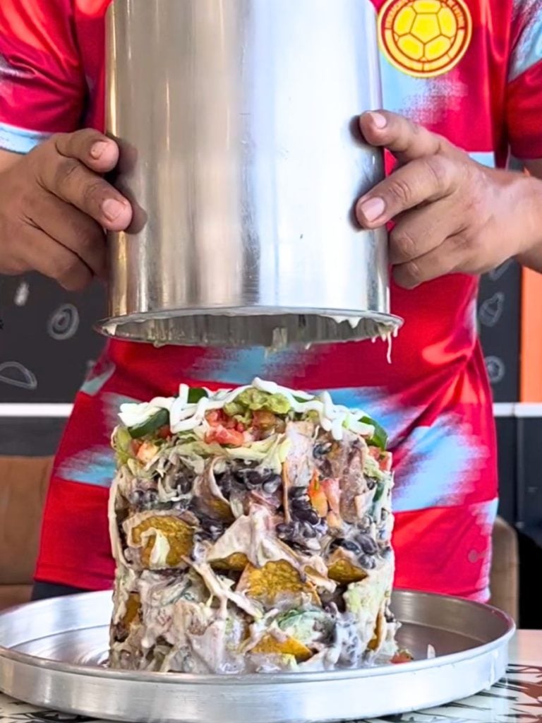 The cylinder is subsequently taken away, leaving behind a massive pile of nachos, guacamole, and cheese (Refer to the Tower Nachos here ). Gather some buddies; you’ll require several forks (or hands) to handle this monstrous dish.